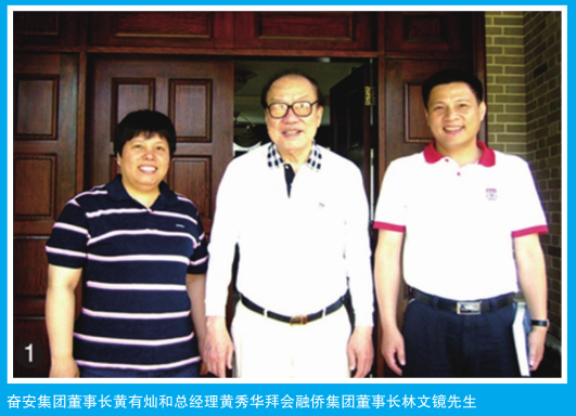 (奮安集團董事長黃有燦和總經理黃秀華拜會融僑集團董事長林文鏡先生。)
