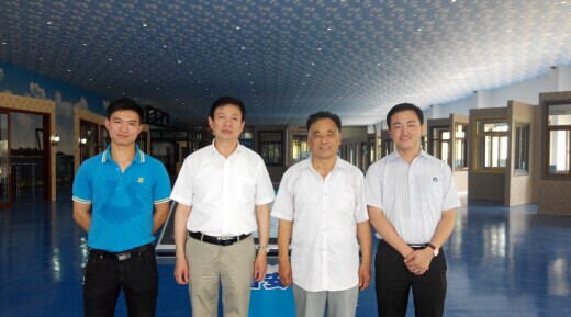 (貴賓與鄒副總、陳副總在全國最大的門窗體驗中心合影)