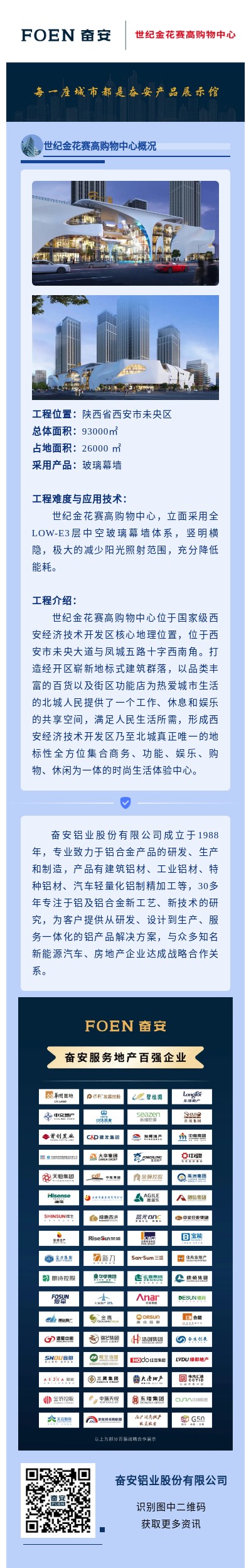 【工程項目案例】西安世紀金花賽高購物中心采用奮安鋁材