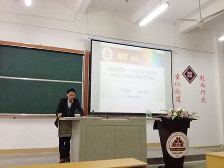 11月20日,奮安集團銷售總經理梁觀榮應福建師范大學閩南科技學院校方之邀,到學校開展關于“實戰營銷”的學術講座。