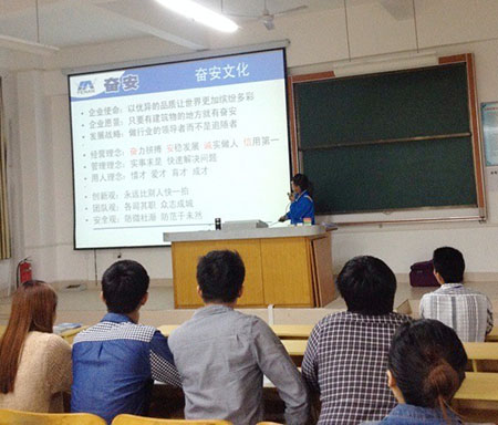 最后,校方還邀請我司銷售總經理梁觀榮到學校開展關于“實戰營銷”的學術講座。另外我司與各大高校還開辟了其他校企合作的模式,如學校派遣學生入企實習,建立學生實習基地、學校推薦優秀畢業生就業、設立校企合作訂單班等。