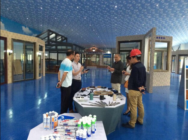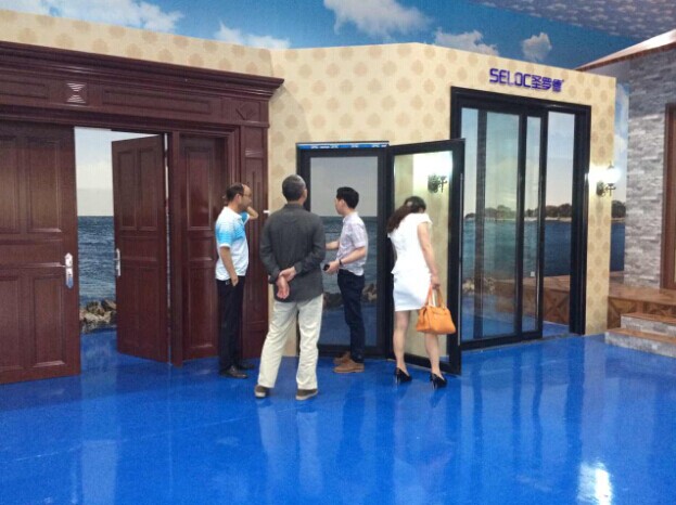 隨后,貴賓參觀全國最大的門窗體驗中心。該體驗中心占地2000多平方米,里面陳列奮安大量的新窗型、新系統窗、新表面處理:如仿古代的古鎮門窗、仿古欄桿、歐式系統門窗、現代窗、酒店專用窗,以及超細粉噴涂、4D木紋、電噴表面、特色鋁單板、鋁模板等一系列新表面、新產品。