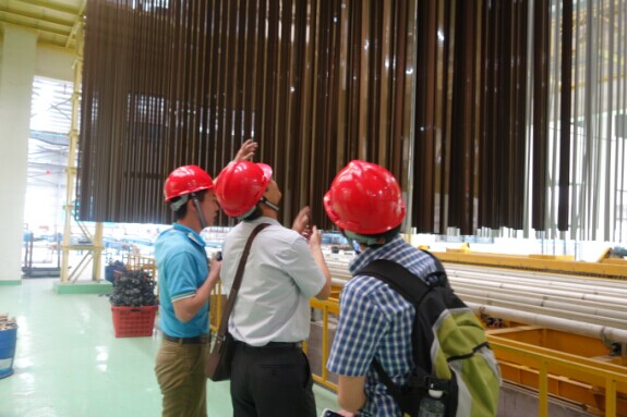 貴賓考察我司全亞洲第一條月產量5000T全自動立式氧化電泳線
