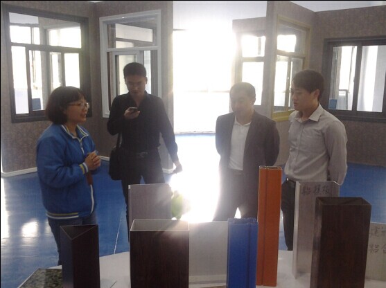 陳主席在體驗(yàn)中心為陳主任等老師一行介紹奮特色鋁單板、鋁模板